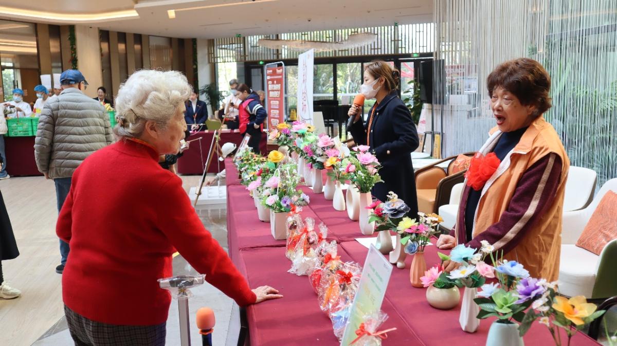 此外,现场设置的剪纸体验、非遗花饰展示、防诈骗知识问答等多个区域均吸引了不少老人参与,各活动点位人流有序、氛围热烈,整场集市始终洋溢着轻松愉悦的氛围。
